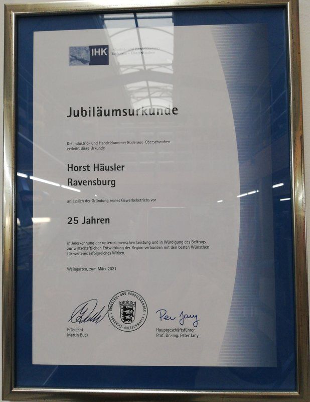 Auszeichnung mit Urkunde zum 25-jährigen Betriebsjubiläum. Groß- und Einzelhandel / PVH